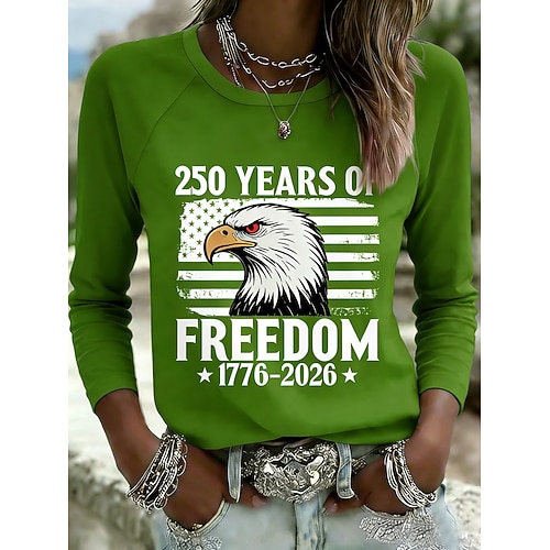T-shirt grafica per il 250° Giorno dell'Indipendenza delle Donne Americane bandiera stilosa e casual maniche lunghe collo rotondo top regolari stampa quotidiana blu bianco rosso estate primavera