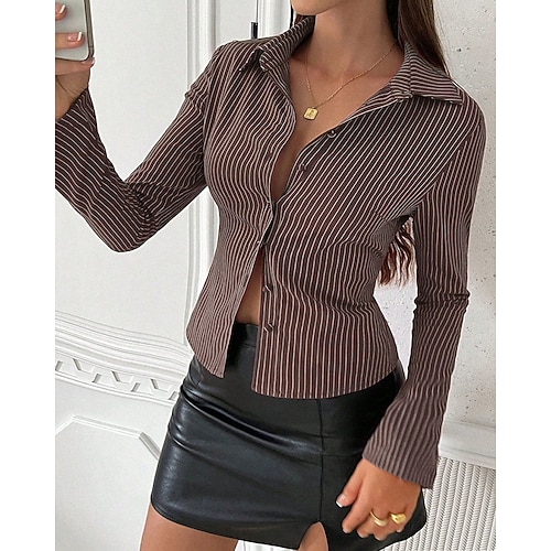 Per donna Camicia Blusa A righe Elegante Moderno Manica Lunga Colletto a Camicia Top Regolari Quotidiano Ferie Uscire Patchwork Bottoni Nero Giallo Rosa Vino Marrone Estate Primavera Autunno