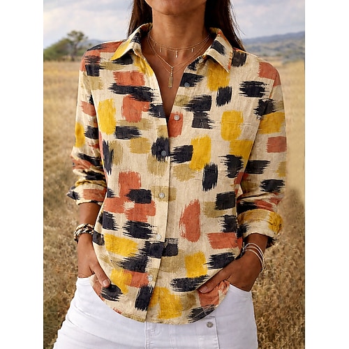 Per donna Camicia Grafico Geometrico Elegante Vintage Tropicale Manica Lunga Colletto a Camicia Top Regolari Quotidiano Lavoro Bottoni Stampato Giallo Rosa Arancione Beige Estate Primavera Autunno