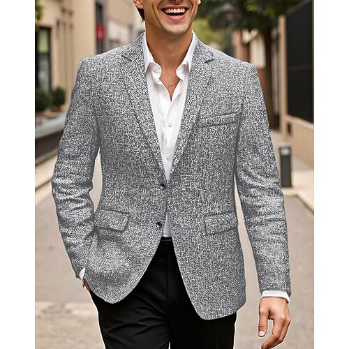 Per uomo Blazer Affari Cocktail party Ricevimento di matrimonio Moda Casual Primavera Autunno Poliestere Semplice Tasca Bottoni Confortevole Monopetto Giacca Nero Blu marino Grigio