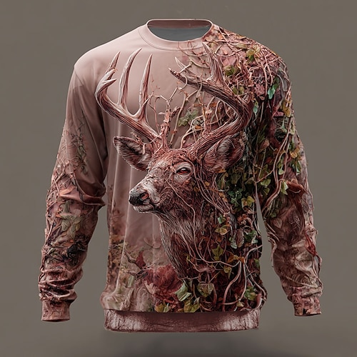 Per uomo Foglia Cervo Felpa Casual Manica Lunga Girocollo Vacanza Feste Regalo Borgogna Marrone Verde Girocollo 3D Tutte le stagioni progettista S M L XL XXL XXXL