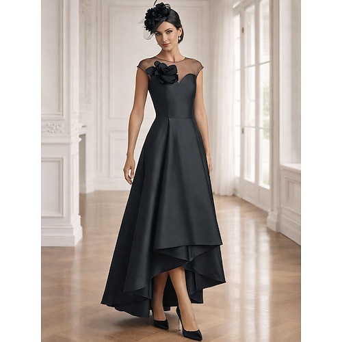 Linea ad A Asimmetrico Vestito da Festa Abito da Cocktail Abito da invitata a nozze Abito da cerimonia per signora Senza Maniche Collo gioiello Elegante Alto Basso Ospite di nozze Ricevimento di