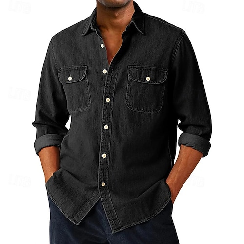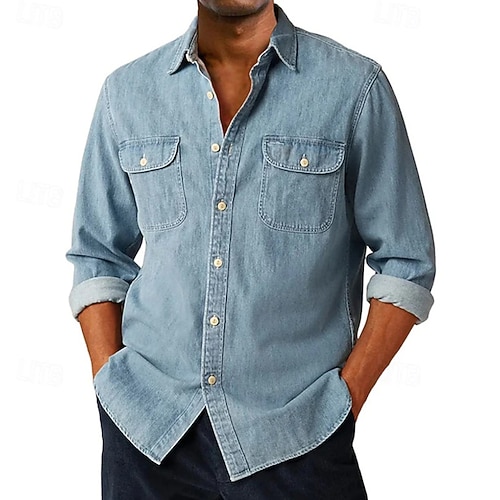 Per uomo Camicia Camicia Estiva Camicia casual Camicia con Bottoni Camicia lavata con acido Blu Nero Bianco Giallo Rosa Manica Lunga Semplice Collo ripiegato Casuale Quotidiano Classico Abbigliamento