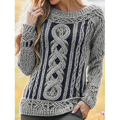 Per donna Felpa Vintage Stile Etnico Casual Colore Puro Treccia Girocollo Lavorato a maglia Manica Lunga Top Regolari Maglia All'aperto Quotidiano Weekend Blu Marrone Autunno Inverno