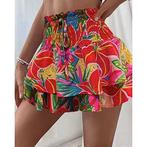 Per donna Shorts Vacanza Streetwear Casual Corto Vita media Floreale Elastico in vita Stampa Confortevole Micro-elastico Quotidiano All'aperto Vacanza Blu Cammello Bianco Rosa Estate Primavera