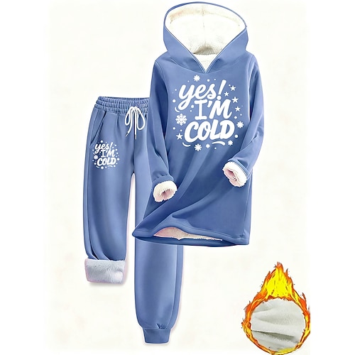 Per donna Quotidiano Elegante Set da due pezzi Tuta Set di Pantaloni Manica Lunga Con Cappuccio Grafico Lettera Coulisse Stampato Casuale Quotidiano Blu Nero Rosa Autunno Vestibilità comoda