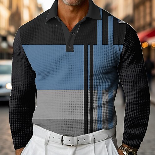 Per uomo Blocco di colori Magliette Polo a Nido d'Ape Manica Lunga Magliette polo Camicie con Colletto Business Casual Affari Abbigliamento da lavoro Abbigliamento quotidiano Bottoni Primavera