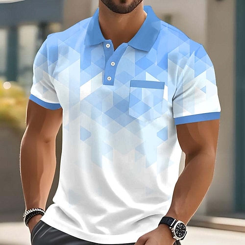 Per uomo Motivo Geometrico Polo Manica Corta Magliette polo Camicie con Colletto Casual Scuola All'aperto Abbigliamento quotidiano Stampa 3D Estate Nero Rosso Blu