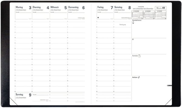 QUO VADIS Wochenkalender Pre 777 VZ, Impala Kunststoff, schwarz, 13 Monate: Dez. - Dez., 1 Woche/2 Seiten, Spaltenansicht, 21 x 27 cm