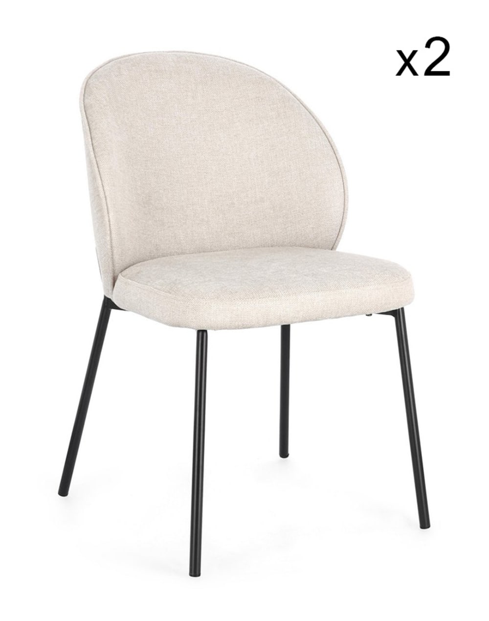 Set di 2 sedie in tessuto beige e gambe acciaio nere