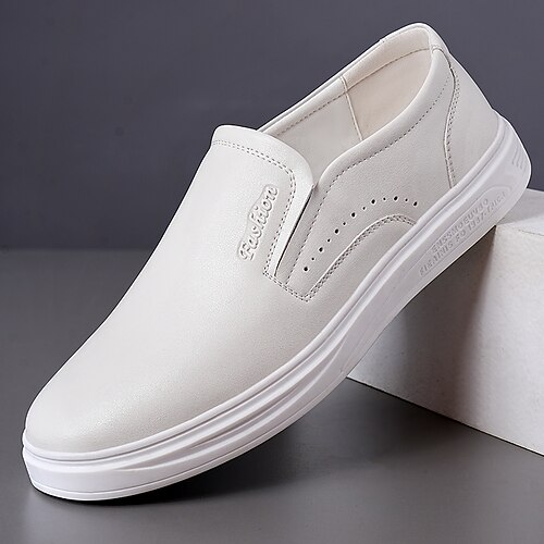sneakers slip-on bianche da uomo con logo – calzature eleganti in similpelle per gli invitati al matrimonio che cercano comfort e stile