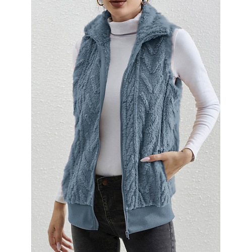 Per donna Gilet Confortevole Traspirante Cerniera Tasca Casual Semplice Vacanza Streetwear Casuale Abbigliamento quotidiano Cerniera Regolare Collo ripiegato Vestibilità regolare Senza Maniche