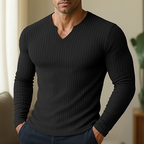 Per uomo T-shirt da uomo in maglia a costine con scollo a V Maglietta a Maglia a Coste Maglietta Manica Lunga Scollo a V Primavera Autunno Tutte le stagioni Semplice Jacquard Testurizzato Moderno