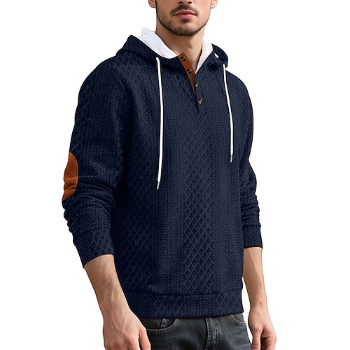 Per uomo Jacquard Felpa con cappuccio Felpa con cappuccio abbottonata Aalbicocca Nero Bianco Blu marino Grigio Con Cappuccio Semplice Patchwork Blocco di colore Testurizzato Sport Outdoor Casuale