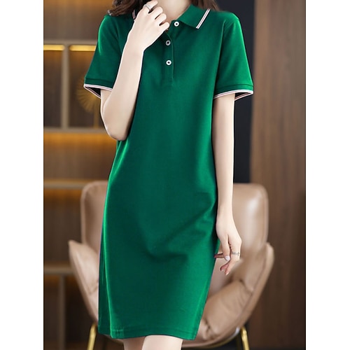 Per donna Mini Abito Abito a Tubino Casual Quotidiano Vestibilità regolare Semplice Manica Corta Bavero Nero Bianco Rosa Blu marino Estate Primavera