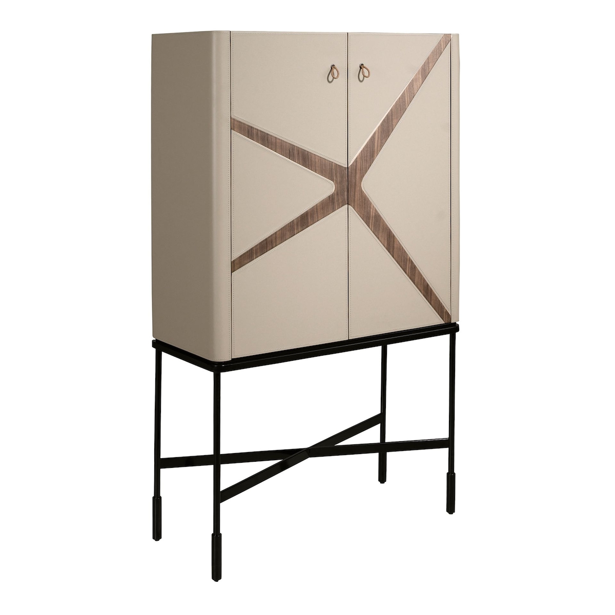 AC ANGEL CERDA Hoher Sideboard aus Kunstleder, Nussbaum und schwarzem Stahl 3280C 90 x 40 x 150