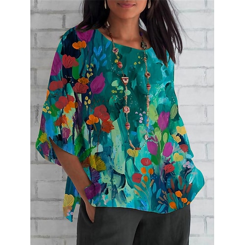 Per donna Camicia Floreale Quotidiano Casual Manica 3/4 Girocollo Top Regolari Quotidiano Ferie Stampato Verde Estate Primavera Autunno