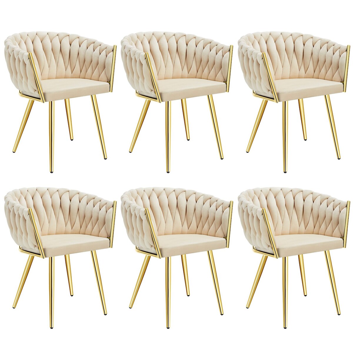 TECTAKE Set Esszimmerstuhl Astano Samt, Knotendesign 6er Setsandfarben/gold