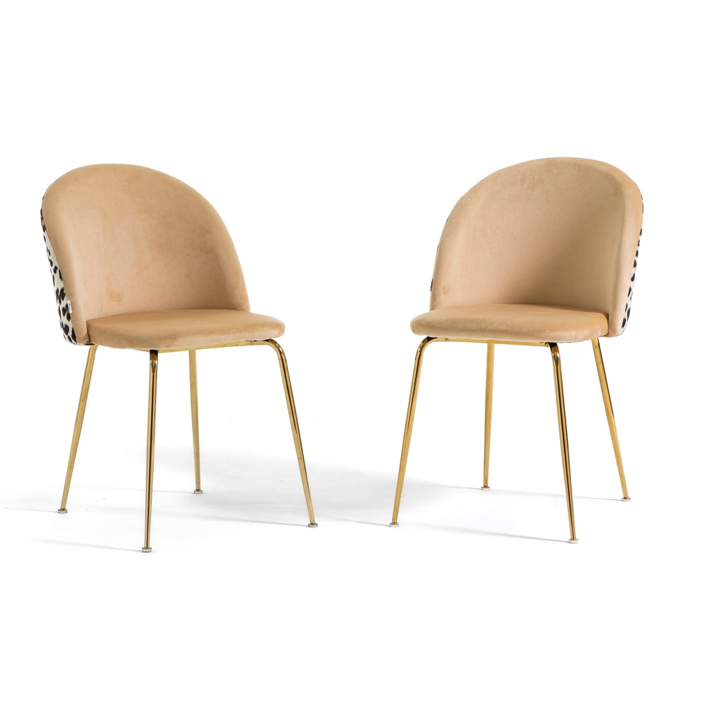 RATTATAN Set aus 2 Innenstühlen aus dekorativem Samt mit Metallbeinen, elegantes Design für Küche, Esszimmer, Restaurant – Sara – Leopardenmuster/Gold