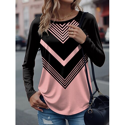 Per donna Maglietta Grafico Geometrico Elegante Casual Manica Lunga Girocollo Top Regolari Quotidiano Weekend Stampato Blu Bianco Rosa Viola Verde Primavera Autunno Inverno