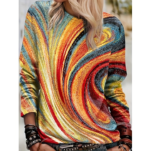 Per donna Maglietta Ombre Grafico Geometrico Vintage Moda Elegante Manica Lunga Girocollo Top Regolari Quotidiano Weekend Stampato Blu Rosa Verde Estate Primavera Autunno
