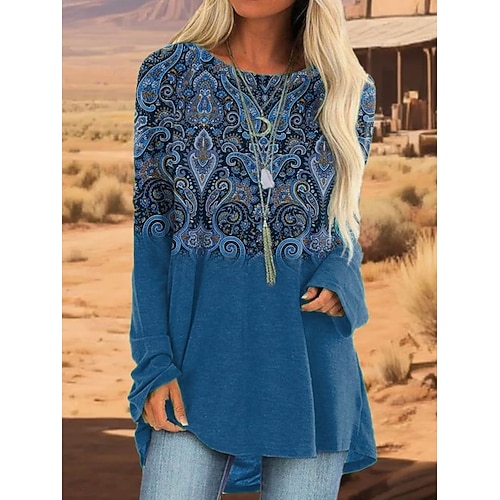 Per donna Maglietta Grafico Tribale Vintage Elegante Casual Manica Lunga Girocollo Top lunghi Quotidiano Uscire Weekend Stampato Blu Viola Verde Cachi Primavera Autunno