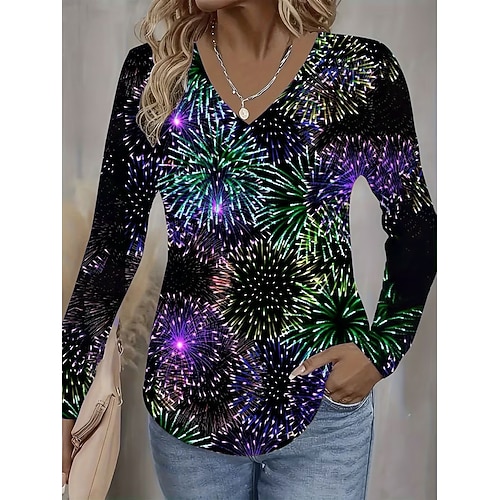 Per donna Maglietta Ombre Grafico Vintage Elegante Classico Manica Lunga Scollo a V Top Regolari Quotidiano Stampato Blu Viola Arancione Primavera Autunno Inverno