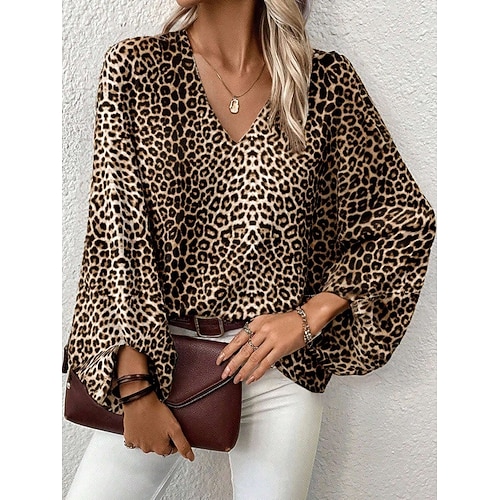 Per donna Blusa Leopardo Elegante Casual Manica Lunga Scollo a V Top Regolari Quotidiano Stampato Leopardo Primavera Autunno