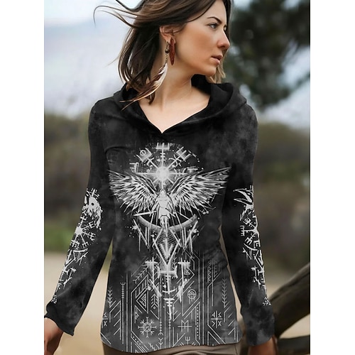 Per donna Maglietta Grafico Geometrico Vintage Elegante Classico Manica Lunga Con Cappuccio Top Regolari Quotidiano Weekend Stampato Blu Bianco Giallo Grigio Autunno