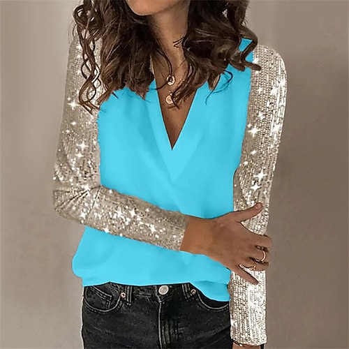 Per donna Top Eleganti Tinta unica Plaid Elegante Classico Moderno Manica Lunga Girocollo Top Regolari Lavoro Quotidiano Uscire Patchwork Rosa Blu Viola Verde Cachi Autunno Inverno