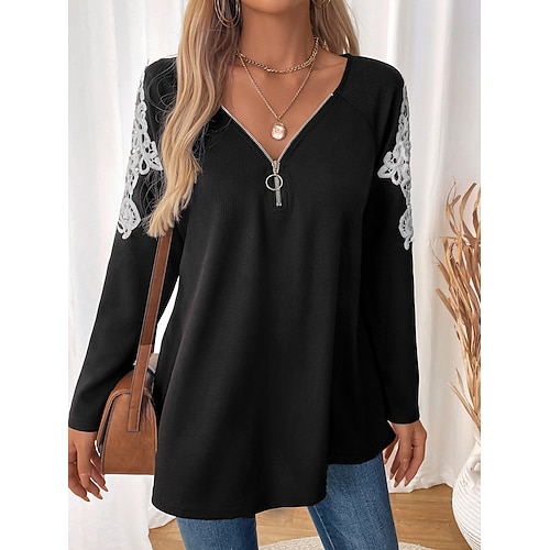 Per donna Blusa Tinta unica Elegante Casual Manica Lunga Girocollo Top Regolari Quotidiano Cerniera Nero Rosa Rosso Blu Viola Primavera Autunno Inverno