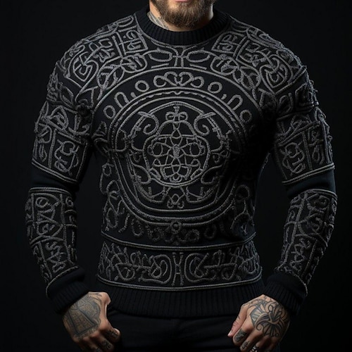 Per uomo Vichingo Maglione Maglieria Girocollo Retrò Vintage Casual Vacanza Quotidiano Stampa 3D Tenere al caldo Manica Lunga Primavera Autunno Inverno Nero