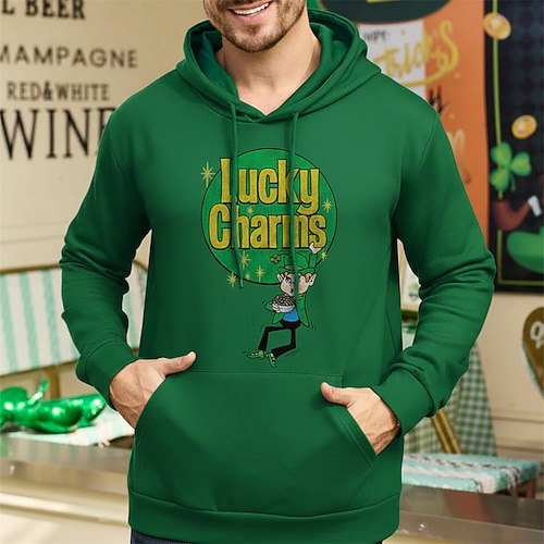 San Patrizio 2026 Trifoglio Irlandese fortunato Carnevale Felpa con cappuccio Innovativo Divertente Adulti Per uomo Giorno di San Patrizio Casuale Feste Costume di Carnevale facile Vestirsi