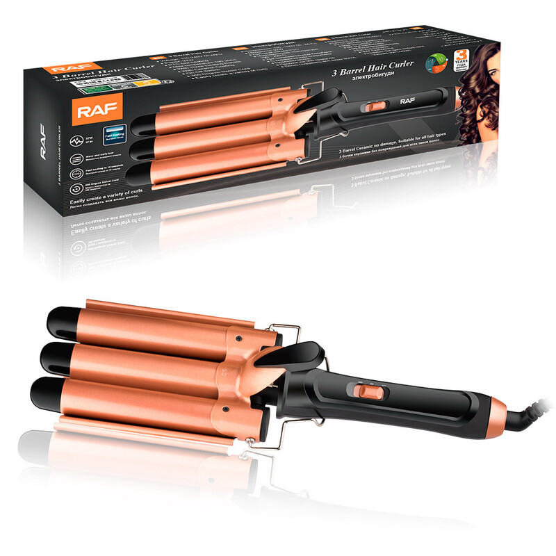 RAF Fer à boucler 3 cylindres en céramique, effet mermaid, chauffe rapide en 10 secondes, pour femmes, look party