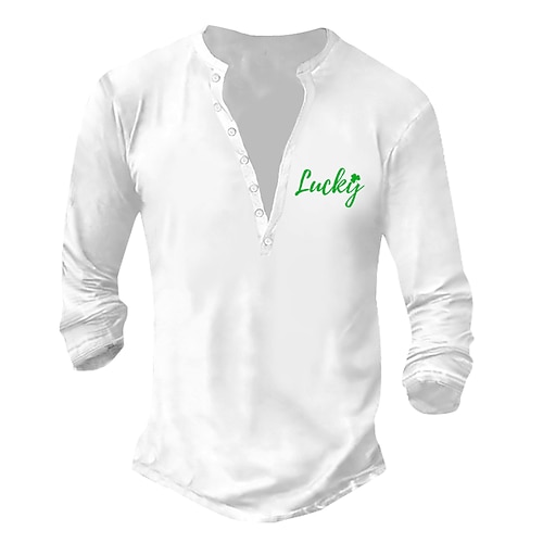 Per uomo San Patrizio Quadrifoglio Maglietta Maglia Henley Manica Lunga Vintage Designer Elegante Casuale Quotidiano All'aperto Primavera Primavera Estate Nero Bianco Verde Henley Maglietta Henley