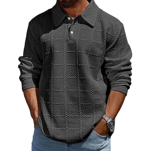 Per uomo Testurizzato Polo da Golf Affari Casuale Bavero Manica Lunga Moda Essenziale Tinta unica A quadri Jacquard Autunno Inverno Tutte le stagioni Vestibilità regolare Nero Bianco Blu marino Cachi