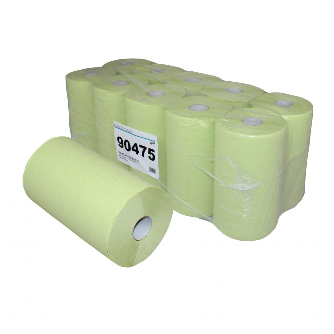 Handtuchrolle Brod 70, grün, 100 % Zellstoff, 2-lagig, unperforiert, 23 cm breit, Rollenlänge: 70 m, 10 Rollen im Folienpack