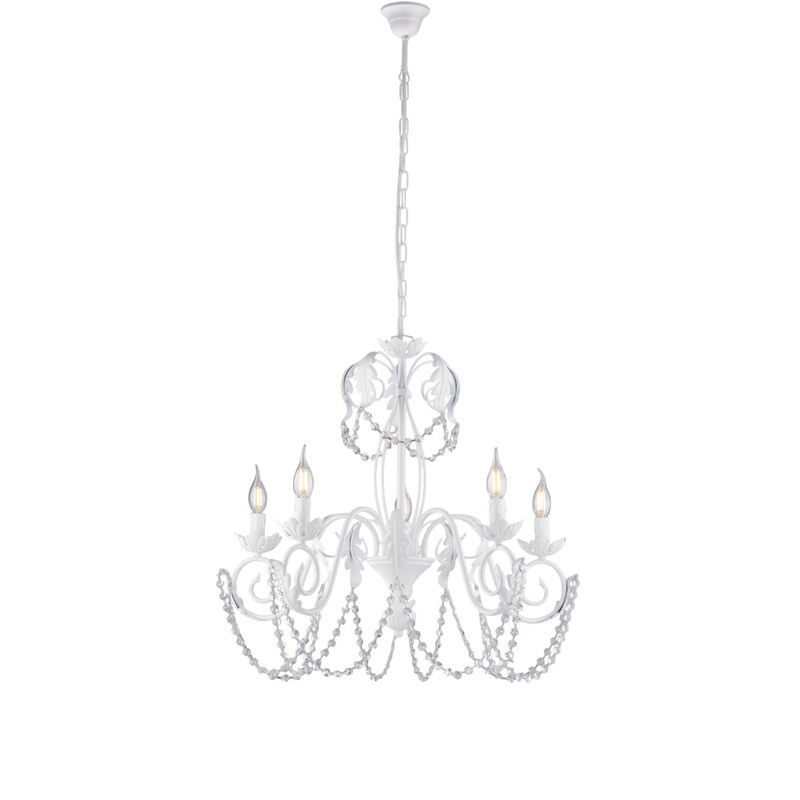 BeLight Damasco - Kronleuchter aus weiß lackiertem Eisen mit Shabby-Chic-Effekt-Dekoration und Kristall-Strasssteinen, 5 Lichter, 125 - Ø63 - BL77-5-BCO