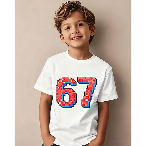 Cotone Bambini Ragazzi Nero Bianco Grafico Gergo divertente 67 Maglietta Blusa Girocollo Manica Corta All'aperto Abbigliamento Quotidiano Moda Streetwear Designer Stampa Estate