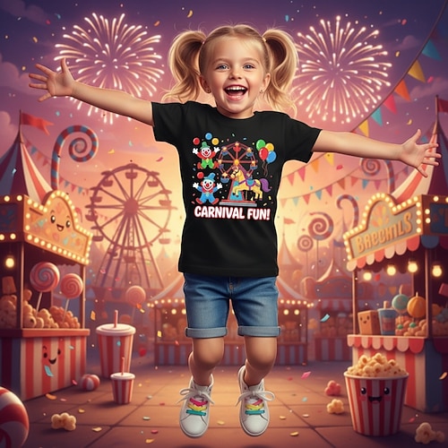 Carnevale Ragazze 3D Grafico Maschera Martedì grasso Maglietta Manica Corta Stampa 3D Estate Primavera Sport Moda Streetwear Bambini 4-12 Anni Girocollo Casuale Quotidiano All'aperto Vestibilit