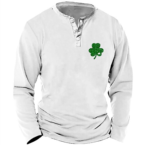 T-Shirt Giorno di San Patrizio da Uomo T-Shirt Camicia Henley Maniche Lunghe Henley Primavera e Autunno Moda Trifoglio Designer Base Bottoni Vacanza Uscita Giorno di San Patrizio Nero Bianco