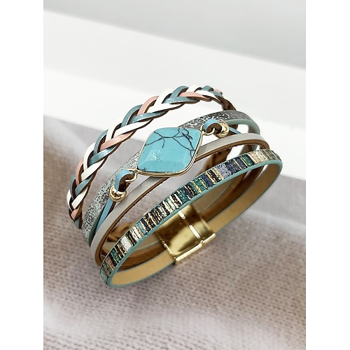 Bracciale avvolgente bohémien da donna – polsino magnetico multistrato in similpelle con ciondoli in lega e pietra turchese per abbigliamento casual, feste o regali