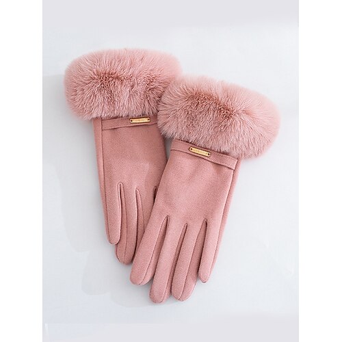 Guanti touchscreen da donna, in pelliccia sintetica di poliestere, comodi guanti invernali per Natale, eleganti e alla moda come regalo per le feste