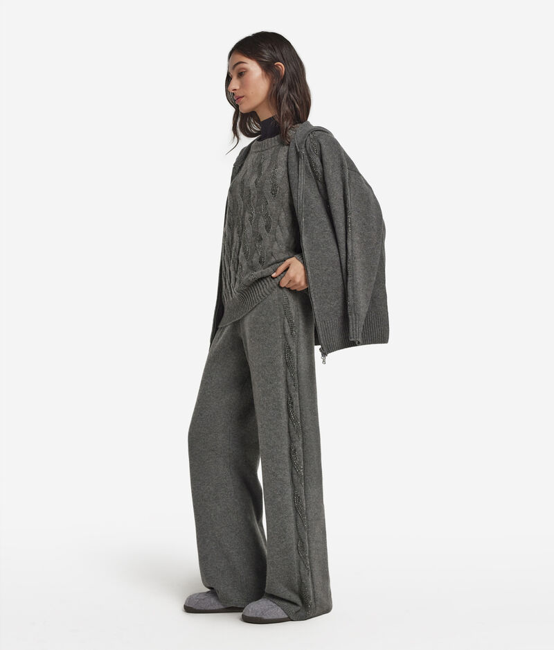 Falconeri Pantalone palazzo con trecce e strass in Cashmere Ultrasoft Donna Grigio Scuro Taglia L