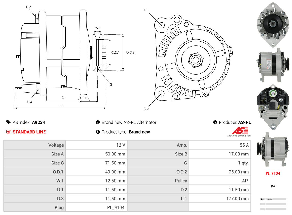 AS-PL Generator A9234 12V 55A für VW 0005927867