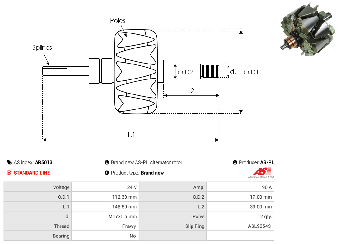 AS-PL Stator, Generator AS0001 Universal 24V 80A für DAF IVECO 93160281 1936221