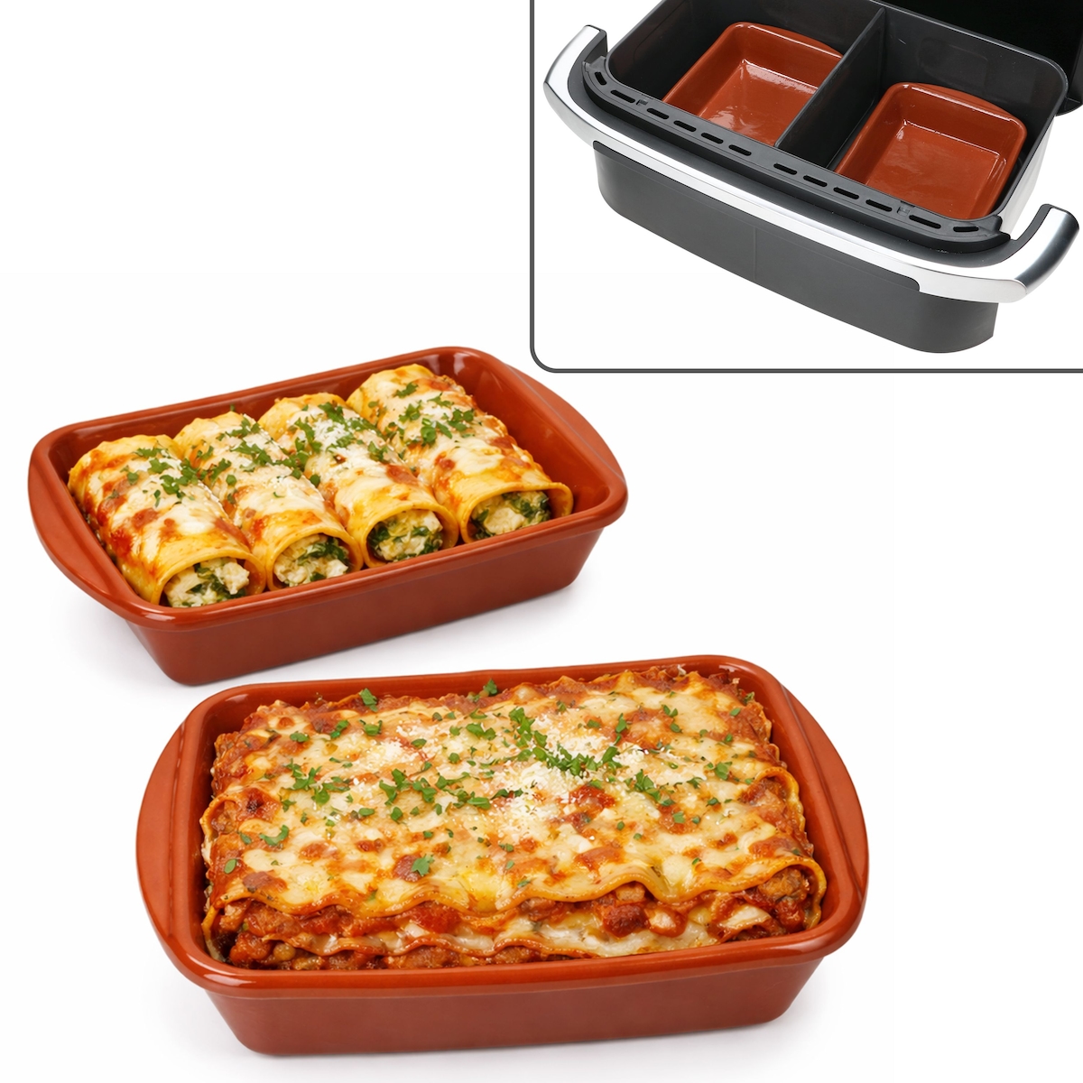 2er Set Airfryer Tonschalen rechteckig LxB 20x14,5cm 350ml Auflaufform Kuchen