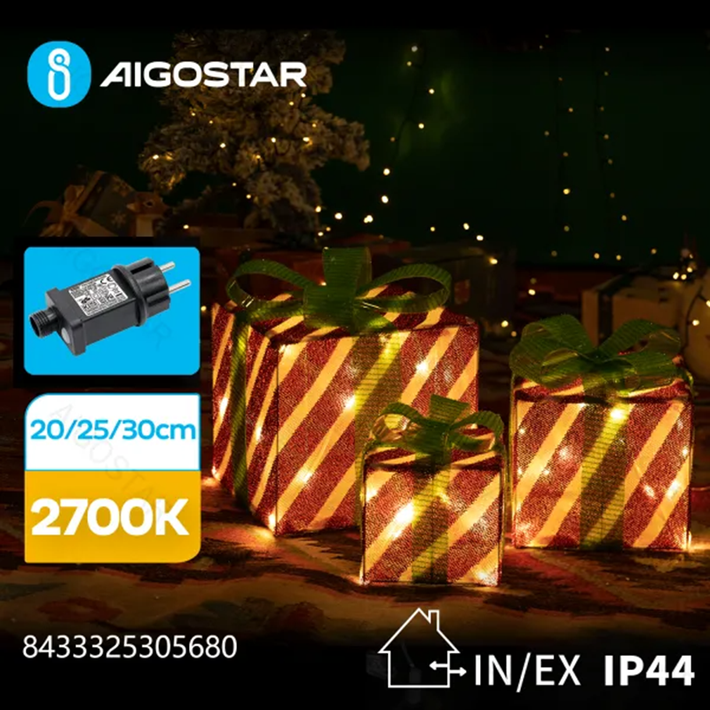 Aigostar Lichtgevende Kerstdozen 20/25/30cm Warm Wit Kerstdoos 8 Lichtstanden + Timer + Geheugenfunctie