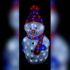 Lex LED Weihnachtsfigur Acryl Schneemann 45cm beleuchtet 80LEDs Weihnachtsdeko blau : 45 cm (80 LED) : Blau