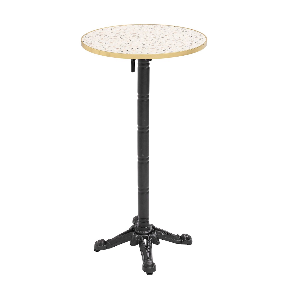 Oviala Business Runder Stehtisch 60 cm neigbar mit Terrazzo/Goldplatte und schwarzem Fuß
